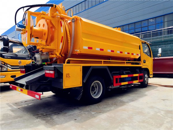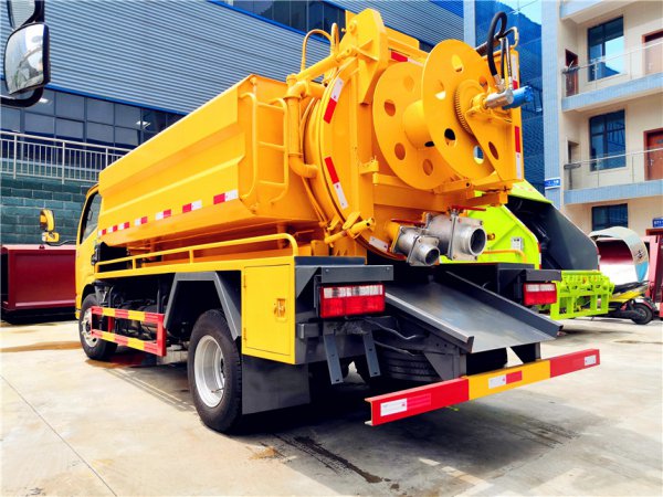 吸污部分:3.8方污罐,罐体5mmQ235优质碳钢,配淄博SK-9水循环泵(北方地区可选装真空油泵),8米吸污管一根,进气管加过滤网,防溢阀加高,后盖卡扣锁紧,前视污亮管,后尾部加装1个力拓牌**mm、150mm的球阀均带进出口,罐体带举升功能,后门带液压开启。