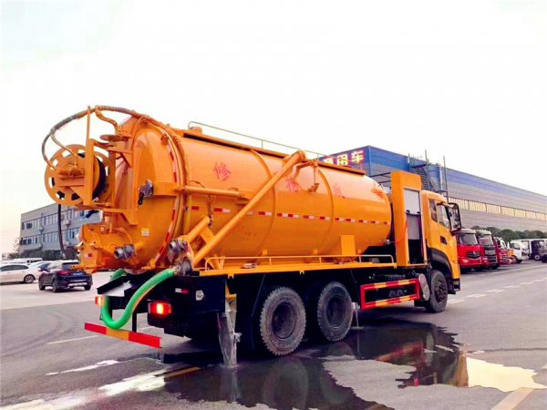 吸污部分:16方污罐,罐体8mmQ235优质碳钢,配潍柴375(420)副发动机带淄博SK-30水循环泵,10米吸污管一根,进气管加过滤网,防溢阀加高,后盖卡扣锁紧,前视污亮管,后尾部加装3个力拓牌**mm的球阀吸污口,600mm排污口液压开启,罐体带举升功能。