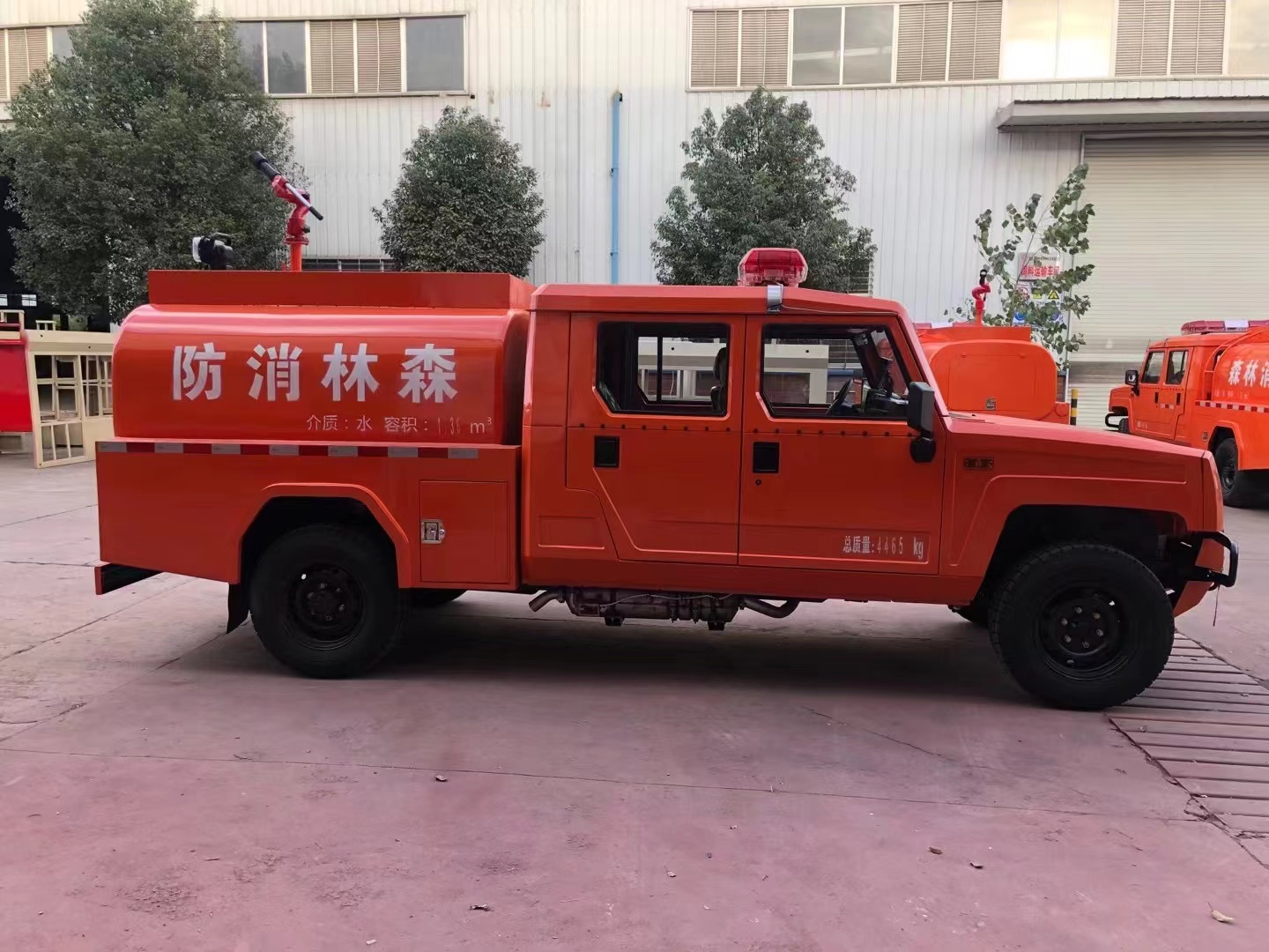 器材箱 | 消防泵在箱体后置,泵房左右侧各2个出水口、器材箱门为后翻式。 |