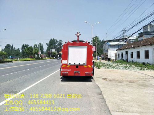 | 专用性能描述 | 驾驶室为全钢框架焊接结构,单排双开门;罐体材料为采用优质碳钢(Q23**),板材厚度4 mm,经久耐用;器材厢门采用铝合金帘子门,滚筒、滑槽导向,启闭轻便、噪音小;门止限位装置双重固定,安全性能可靠;除原车设备外,驾驶室内加装有取力器控制指示灯、100W警报器、LED警灯、标志灯、示廓灯开关及后部照明灯等。 | ||||