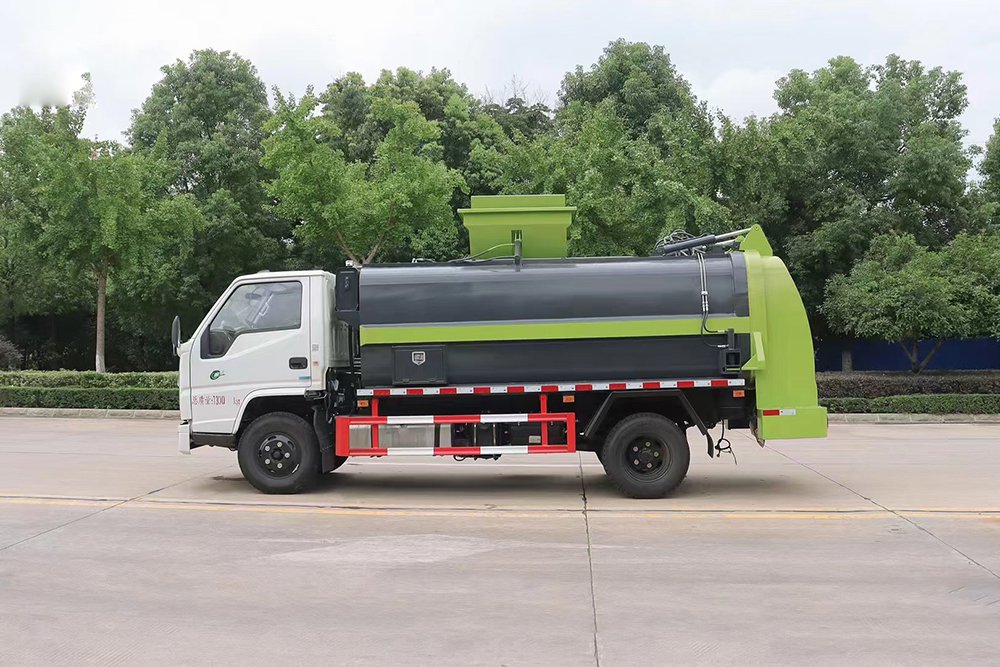 泔水装载由垃圾桶提升系统完成,该系统具有垃圾桶锁止结构,装卸安全可靠。垃圾桶与垃圾投入口衔接好,保证装卸过程中餐厨垃圾不溢撒、不遗漏。垃圾投入口与推板之间有足够距离,推板与罐体内表面设有密封装置,避免餐厨垃圾投入过程及分离过程中溢到推板后方。 液压系统由泵、液压阀和顺序阀以及各种功能的液压油缸、高低压管路组成。关键部件可选用原装进口,保证产品工作可靠、安全。